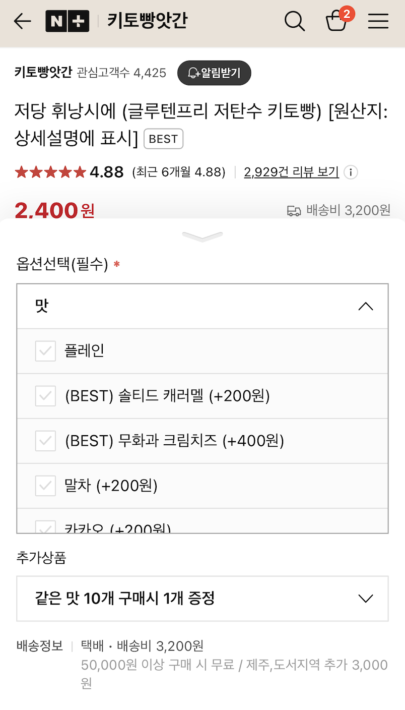 스마트스토어의 경우 상품 선택 후 옵션에서 맛 등을 선택할 수 있는 구조로 되어있어 상품의 단위를 설정해야했습니다.
